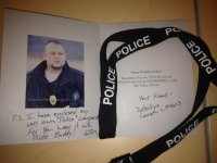 Card given to little boy dying of cancer who asked for police cards. I gave him my personal lanyard.